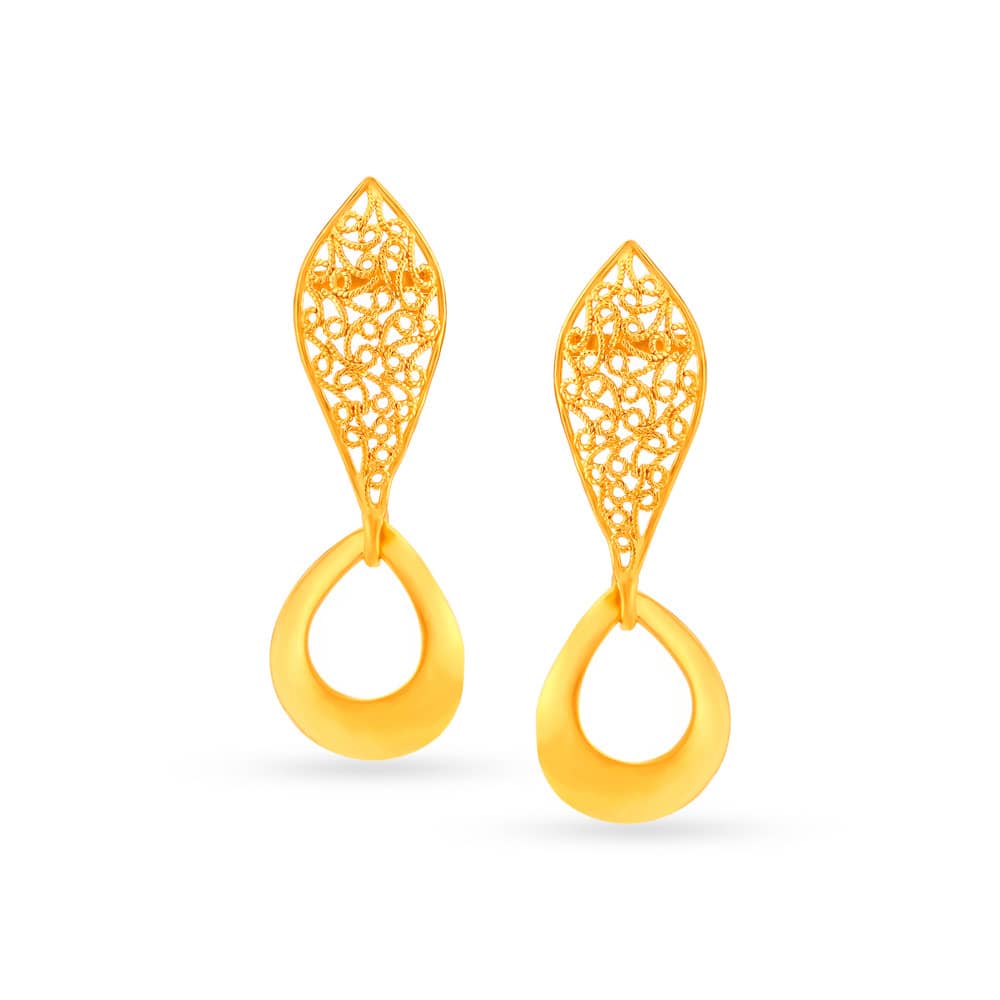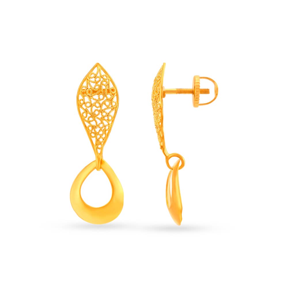 Add radiance to your ensemble with this pair of filigree drop earrings crafted in 22 Karat Yellow Gold.