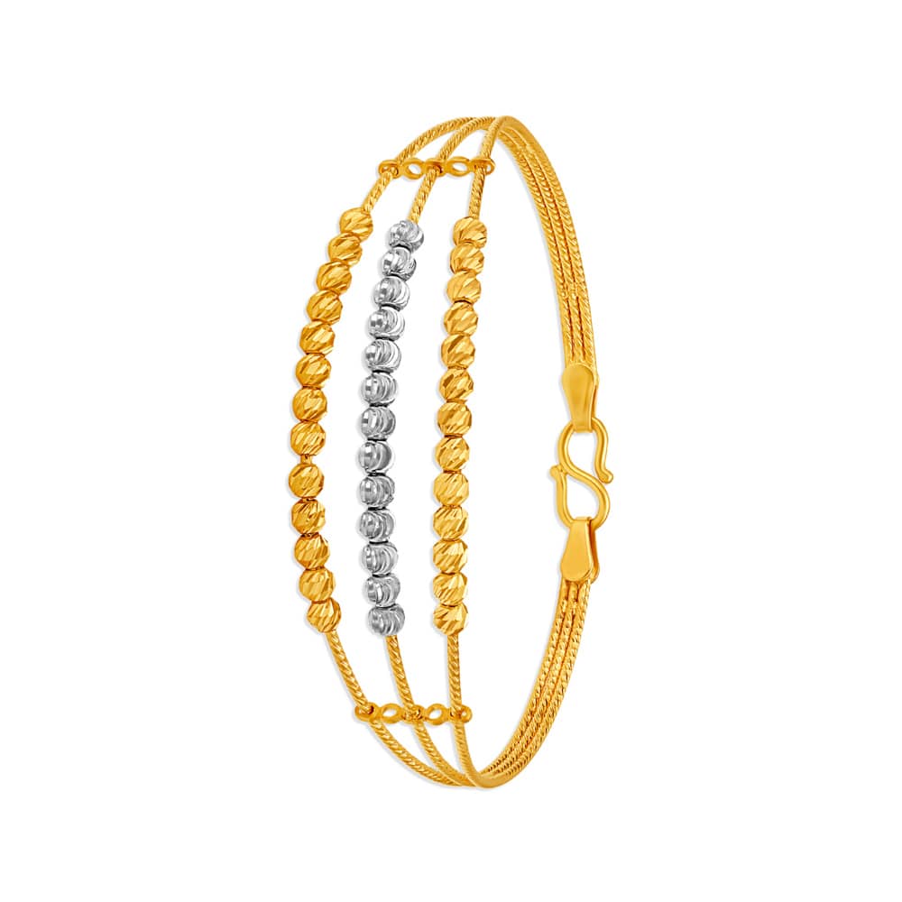 Three Row Yellow and White Beaded Contemporary Bangle. Crafted in 22 Karat Yellow Gold you will be unmissable at parties